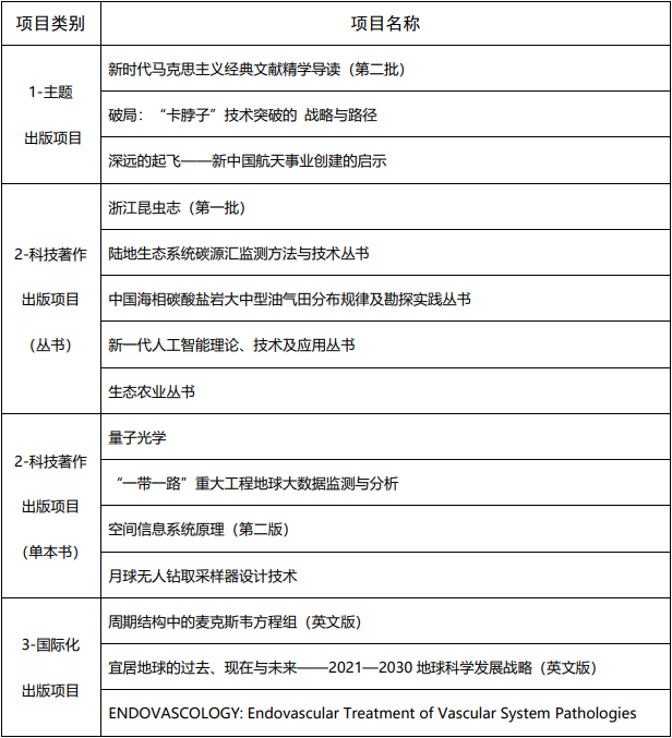 2021年度中國科技出版?zhèn)髅郊瘓F出版基金擬資助項目名單